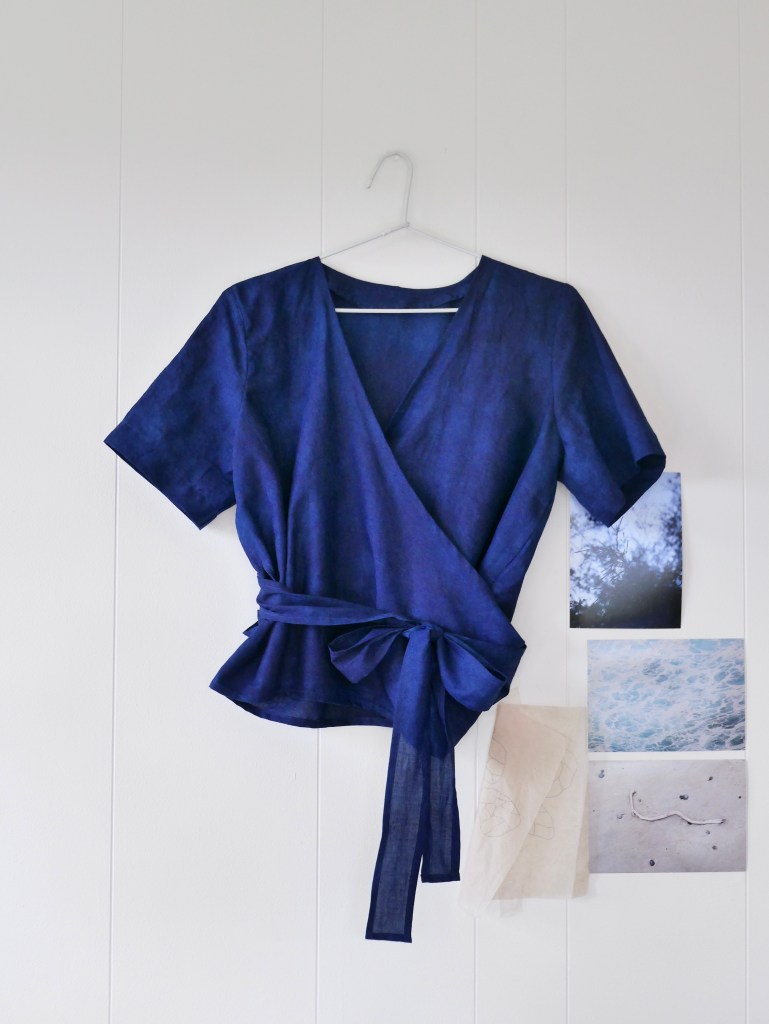 This is the #peppermintwraptop – pattern by @inthefolds in collaboration with @peppermintmagazine I used an old cotton voile fabric I dyed with Indigo years ago, and now I’m excited to try this pattern in other fabrics.