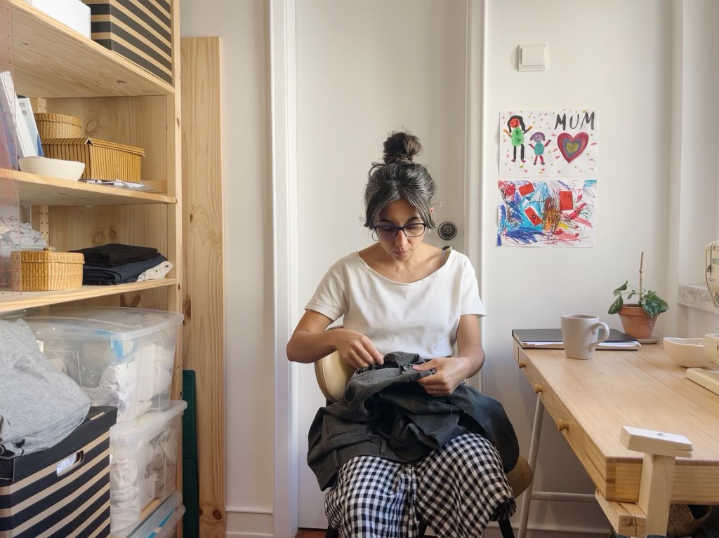 Da minha paixão pela arte têxtil e pela moda, sempre fascinante expressão da identidade pessoal, mas também reflexo de tantas histórias e culturas, nasce a necessidade de encarar o problema ético e ambiental da indústria da moda, e daí partir para um caminho de investigação, mas também de activismo. Em 2016 começo a minha formação e experiências em tinturaria botânica, numa tentativa de explorar uma forma menos poluente de dar cor a tecidos e fios. Essa vontade de aprender a fazer algo de raiz, a perceber o ciclo têxtil, desde planta até ao tecido, até uma peça de roupa, acompanhou-me desde muito cedo, e lançou-me num caminho pautado pelo fazer na área da costura, remendo, reciclagem e reutilização de tecidos.